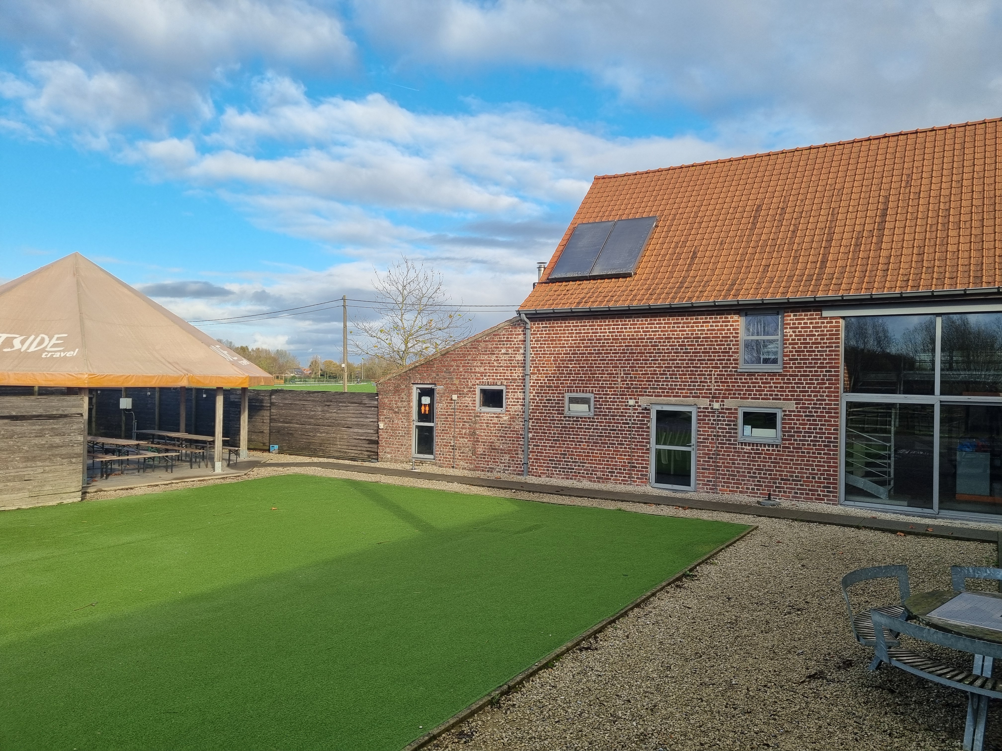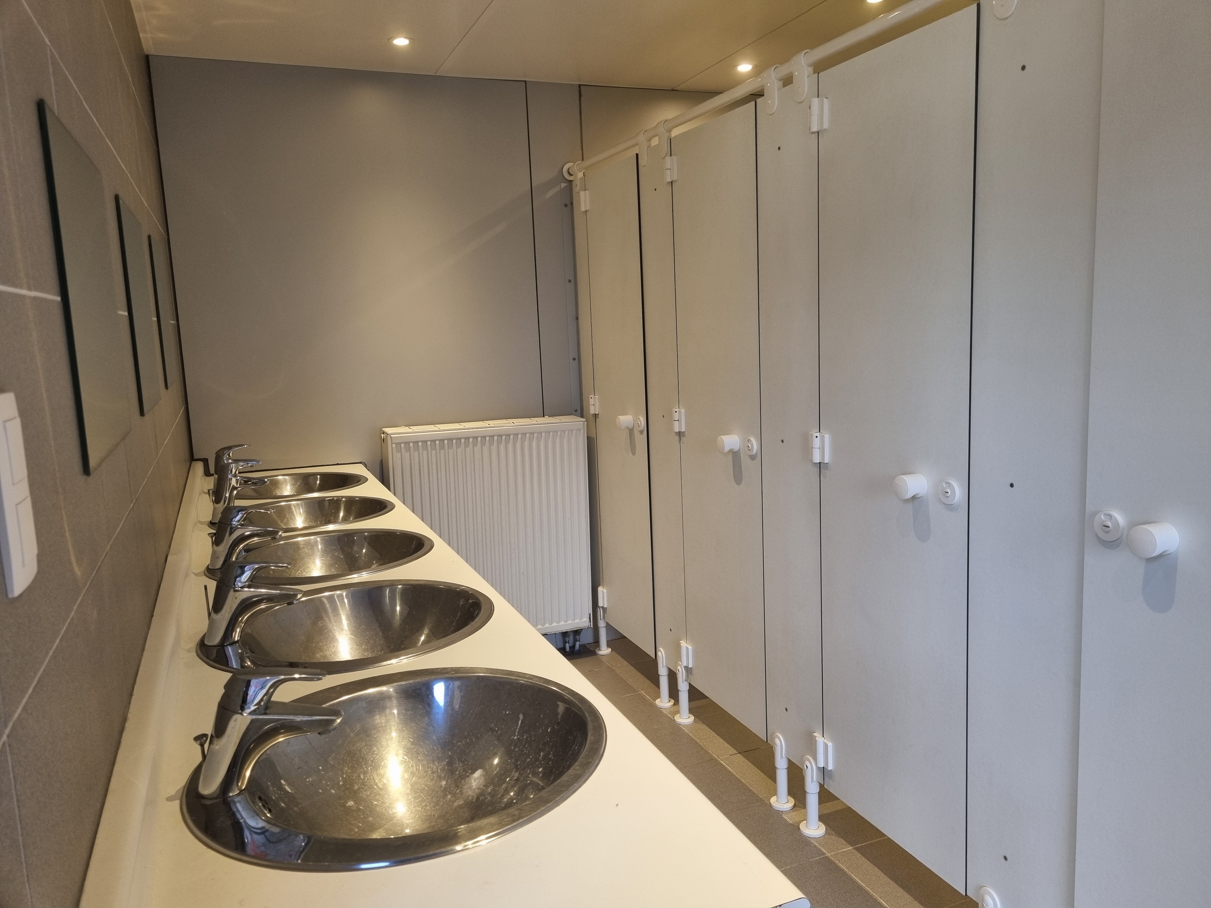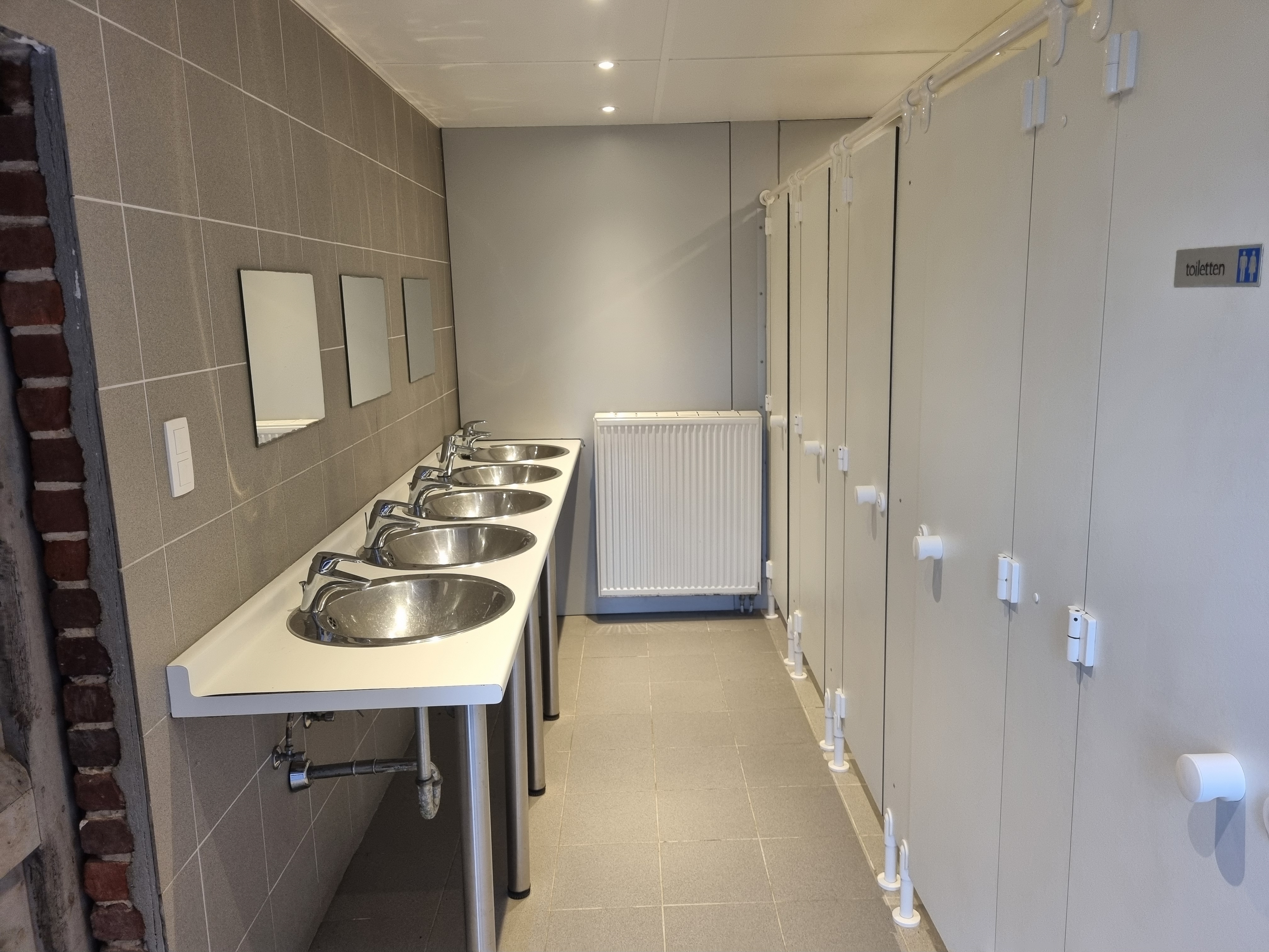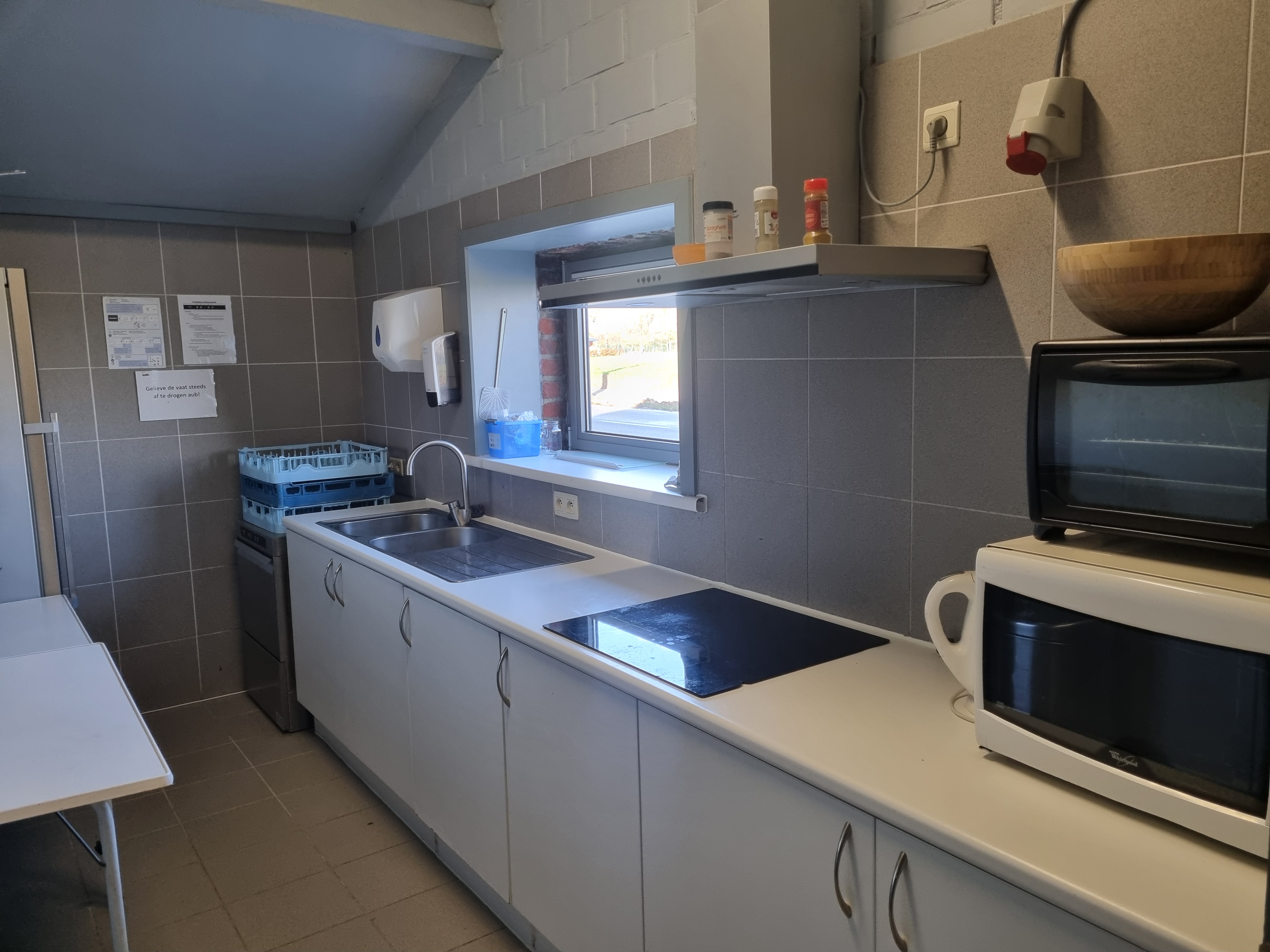 - Gebruik polyvalente zaal, keukentje, sanitaire blokken met toiletten, douches & lavabo’s, frigo, BBQ-toestel, borden, glazen & bestek.