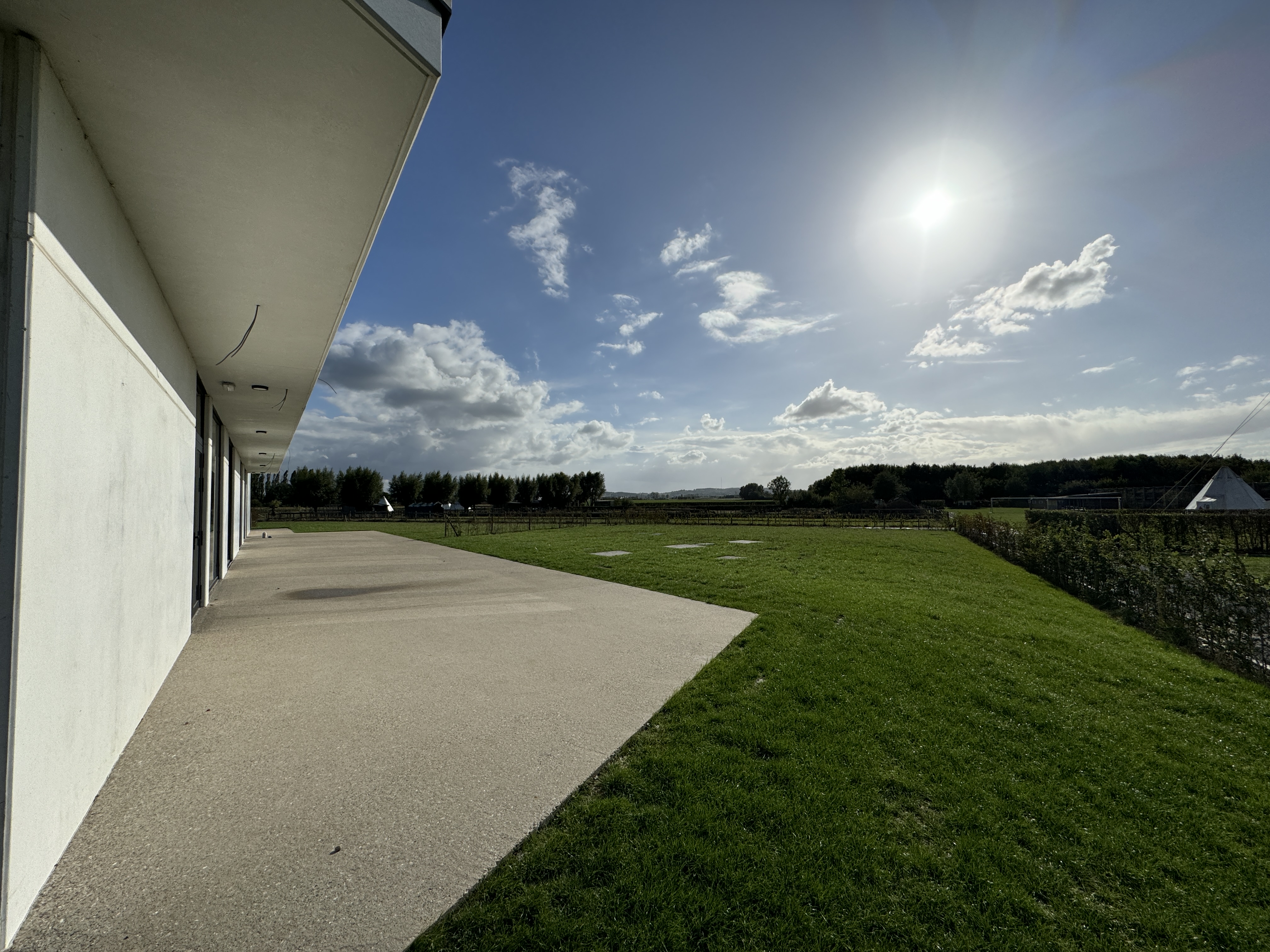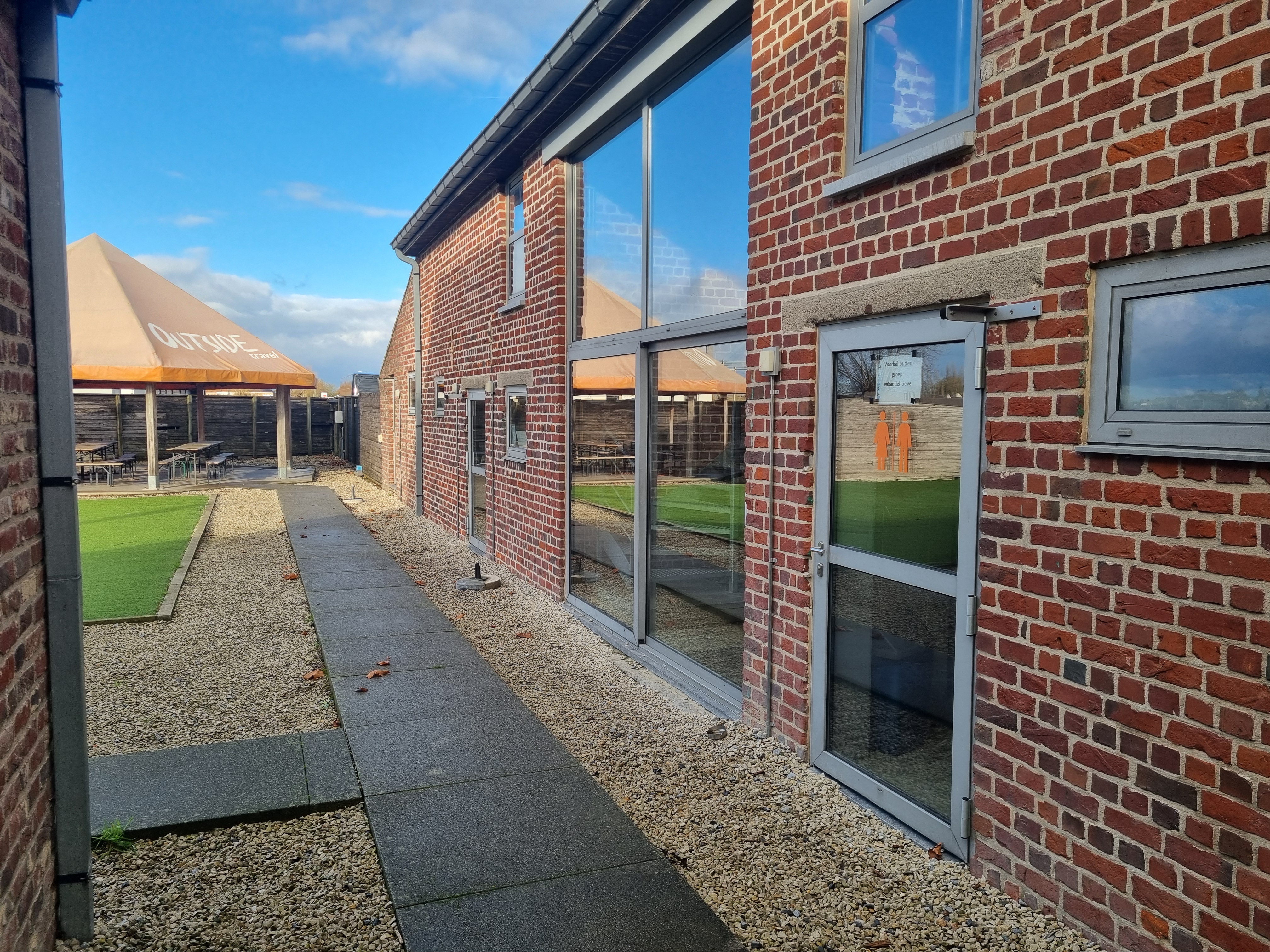 Aansluitend aan de hoeve staat de prachtige Outside-partytent die plaats biedt aan 40 zittende gasten (ideaal om gezellig buiten te eten).